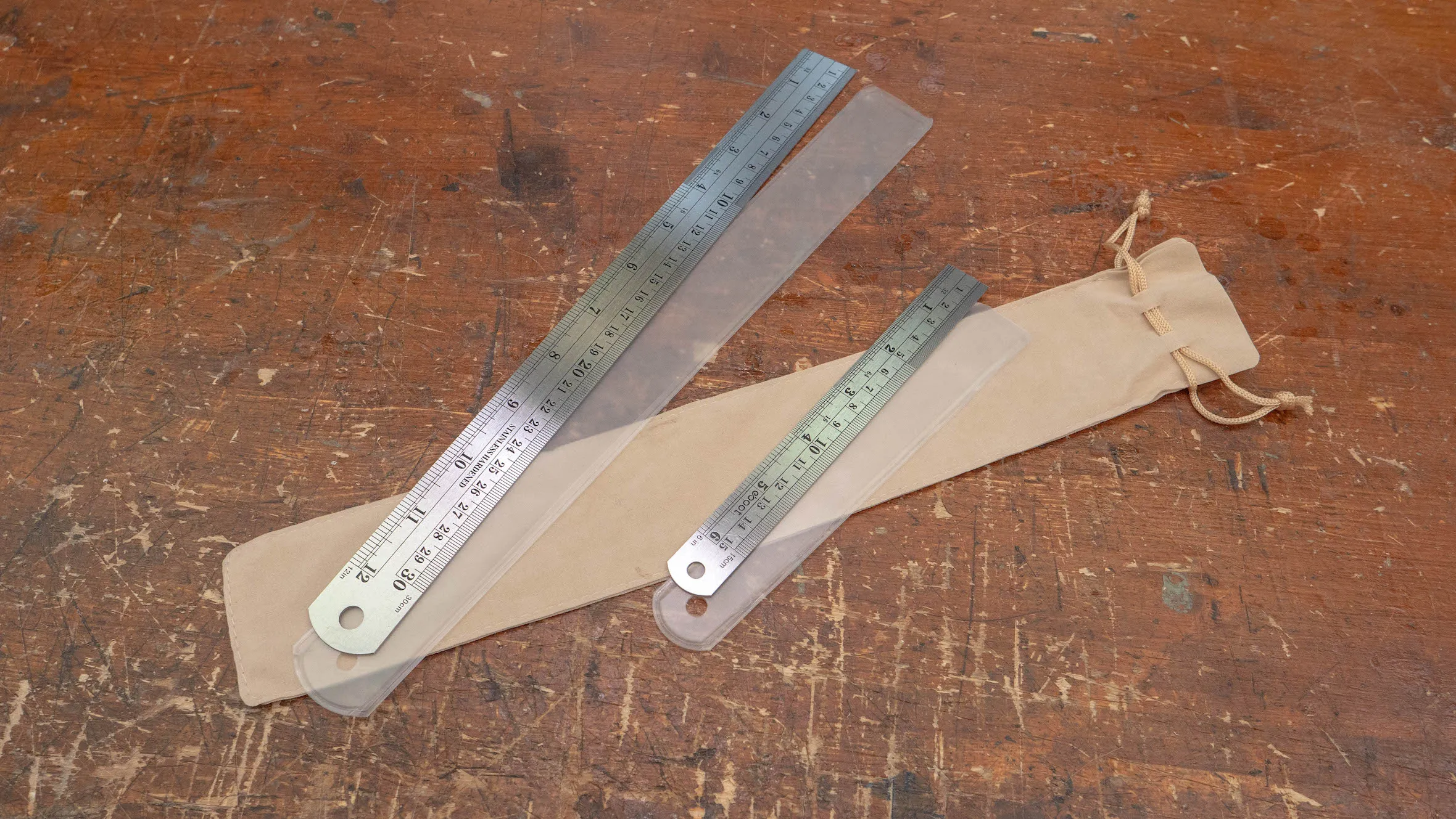 This is used for measuring lengths. This is preferred over a plastic ruler as plastic can become easily damaged when working with wood and tools. Usually comes in sizes of 12” (30cm) or 40” (1 metre). Paul recommends getting one which is engraved so the markings can’t rub away.