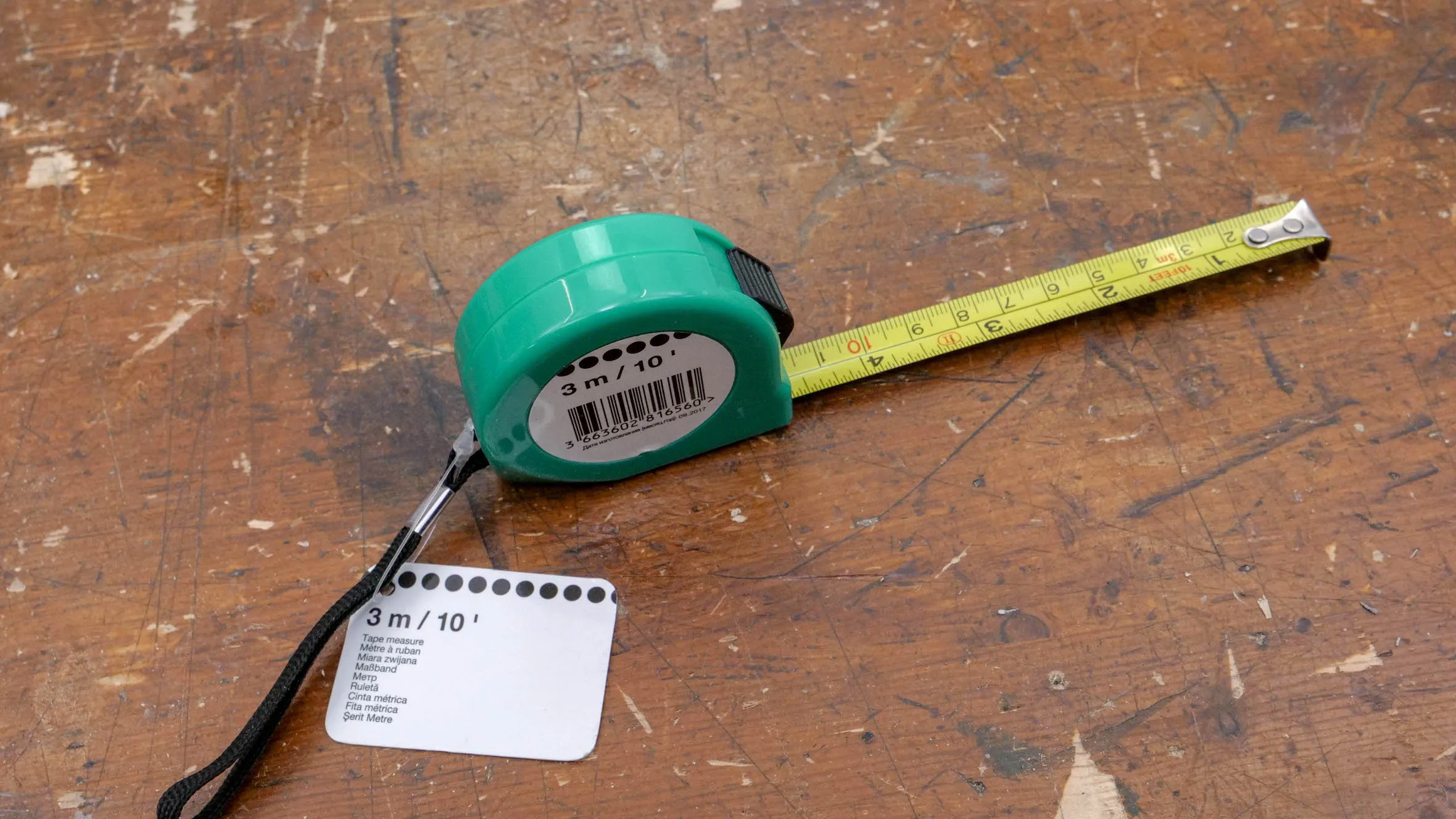 A retractable tape measure allows you to measure long lengths without having to take up a lot of space for storage. The curve in the tape provides strength and stiffness, ensuring a sturdy edge for marking. Paul recommends getting one with a plastic outer casing as this is lighter to carry around. He also suggests you get a small one which fits in your pocket. Usually the dimension of the casing are not stated online so it might be best to buy one of these in store.