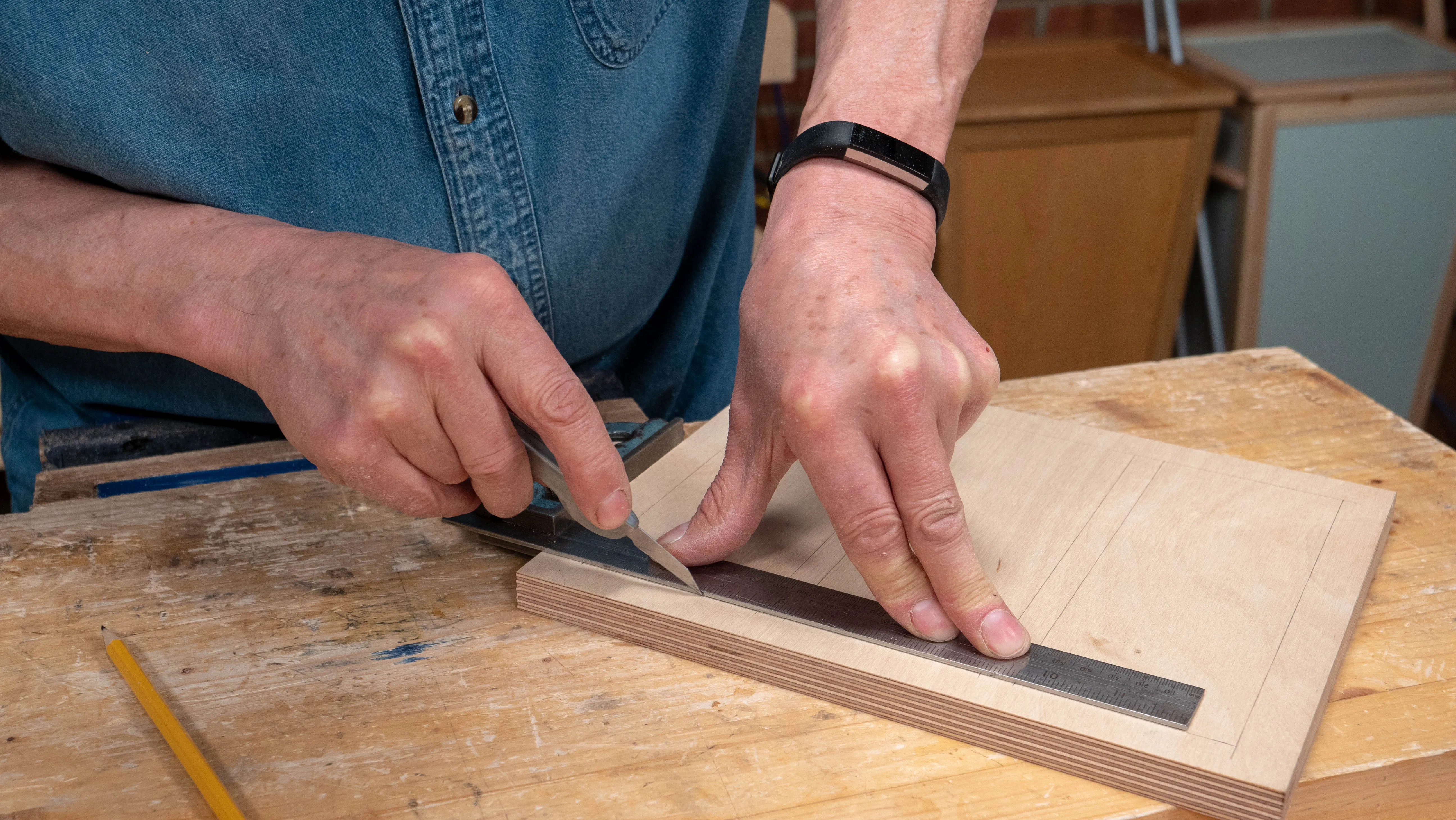 Go over the pencil marks with a knife and a square.