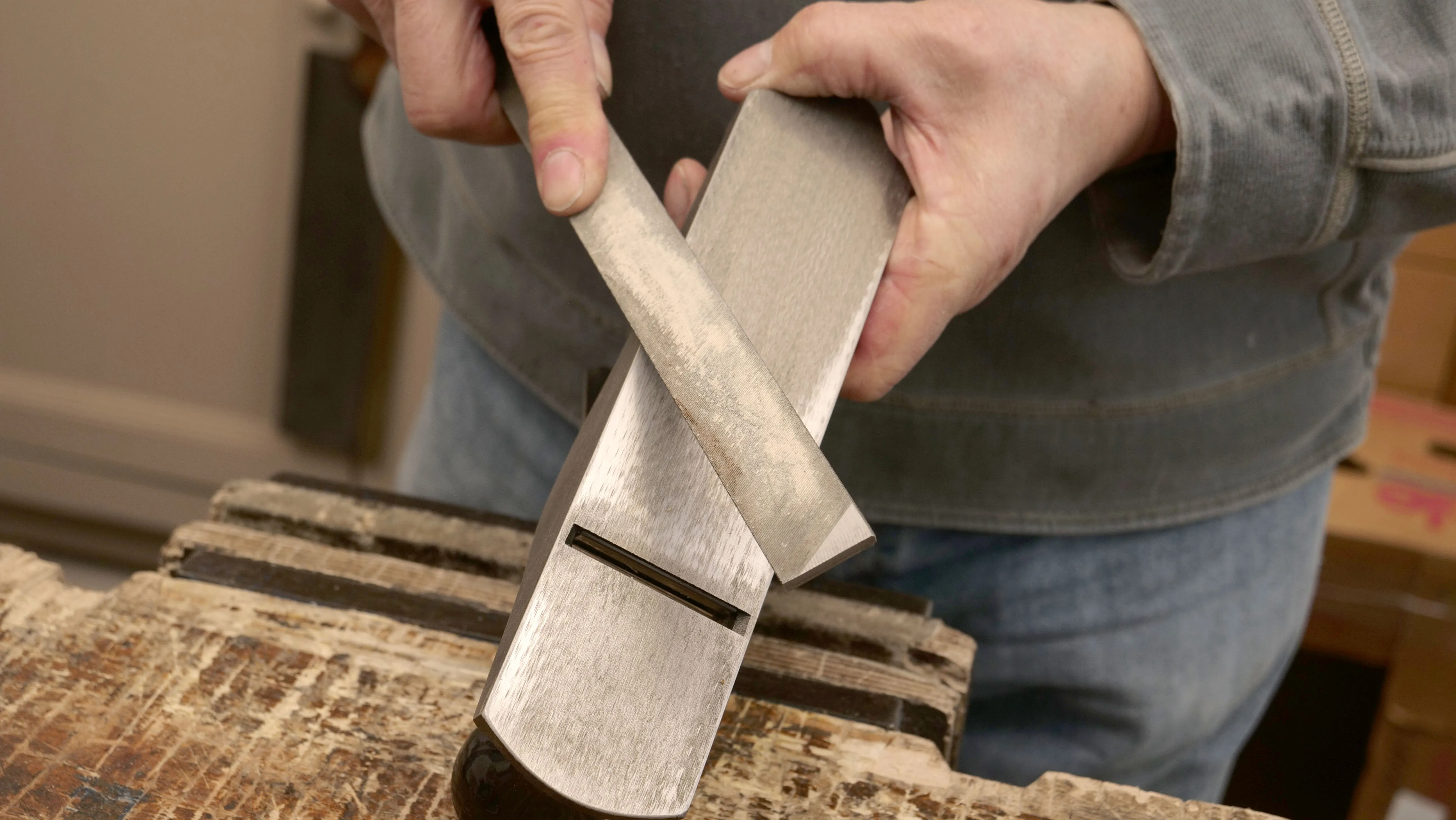 If your plane has plastic handles, you might be able to feel a seam down the middle where the two halves of the handle are joined. If left, these seams will become uncomfortable and might cause blistering. Use a file or a card scraper to remove these. The texture will feel different and will appear less glossy. However, you can apply a few coats of shellac if you want the glossiness to return. You can use sandpaper all over the handle if you do not like the feel of the glossy plastic.