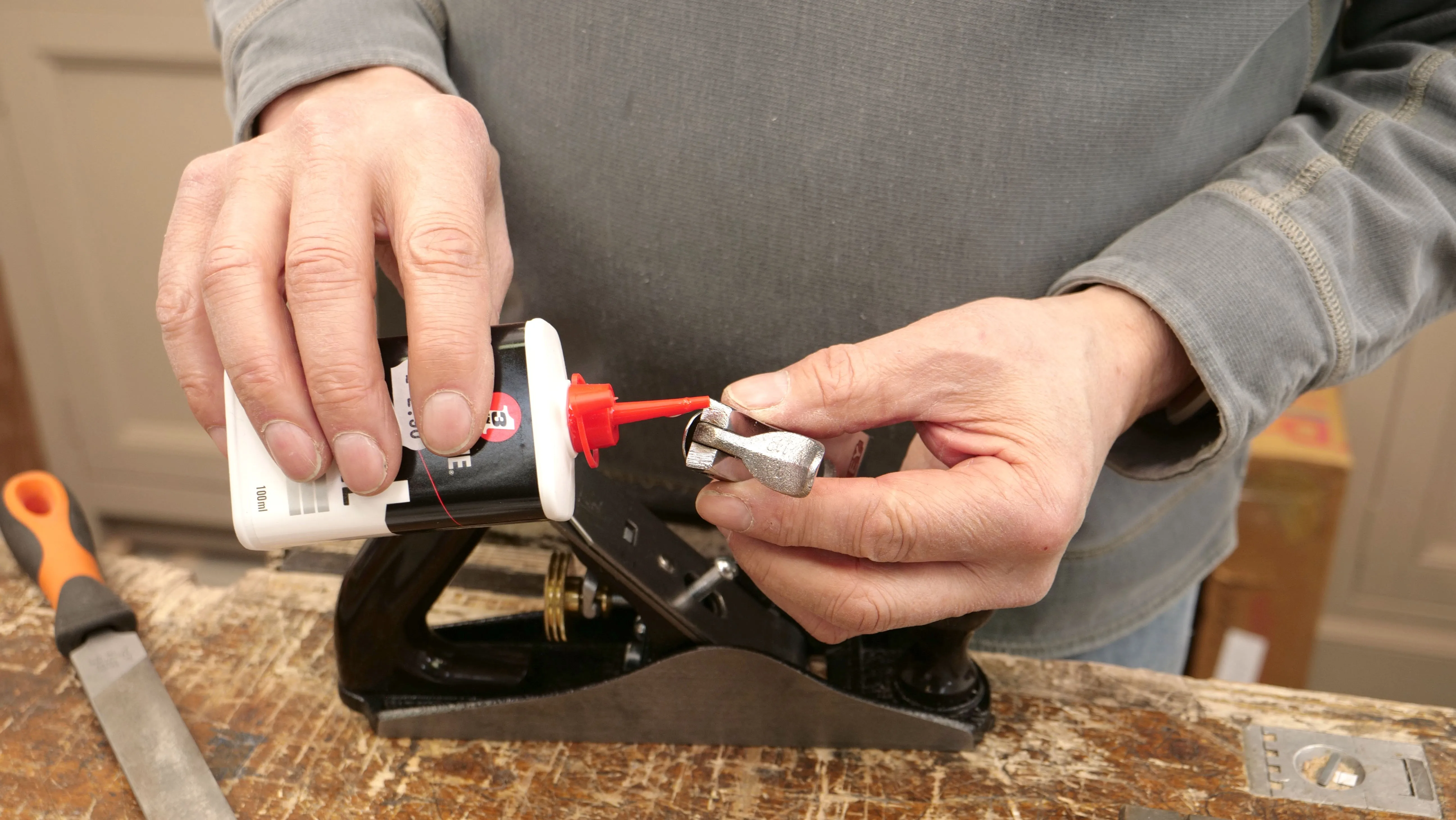 Tip: If you have purchased a new plane, you may notice that there is a varnish coating applied all over. This is to reduce the risk of the plane rusting during distribution and storage. This can easily be removed from the sole by using abrasive paper or a suitable solvent.
