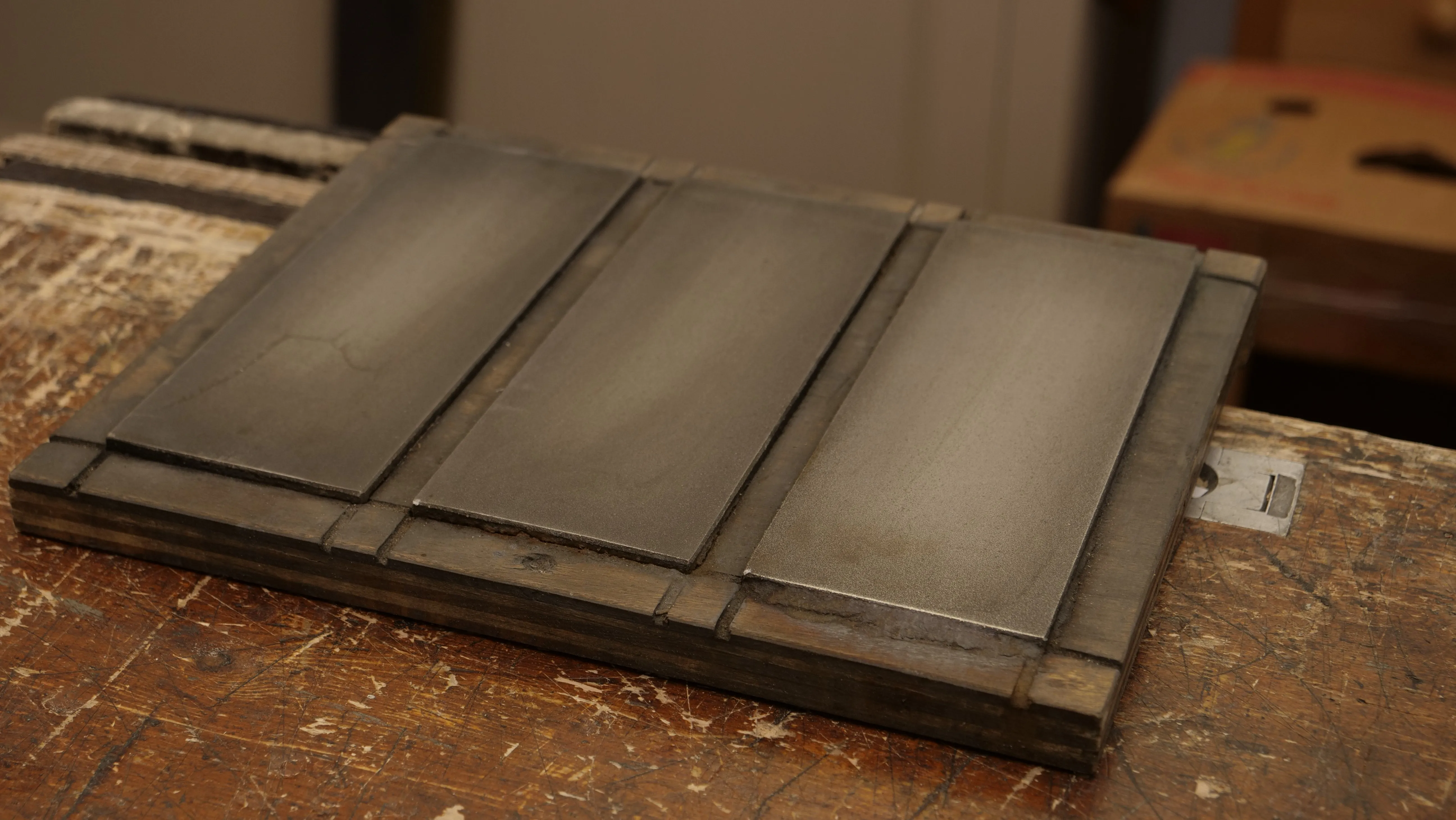 These will sharpen your tools fast, as they do not wear noticeably. Their hard-wearing properties mean diamond stones are the most expensive of all the methods in terms of initial outlay. Like the other options, diamond stones need to be kept lubricated throughout sharpening. Three levels of coarseness works well to sharpen blades. Each stone should be a minimum of 3” x 8” to ensure you can fit the largest bench plane blade on width ways. The extra width and length will give you the ability to move the blade across and along the length using longer strokes. The coarse stone should be between 120-400 grit, the fine should be 600-1000 and the super-fine should be 1200-1500. You can make a plate holder to secure the stones in. This will keep them flat, safe and secure. The holder can also fit into your vice. To see how Paul made his, see our guide here. Paul uses EZE-LAP diamond stones. You can read more in our diamond stones buying guide.