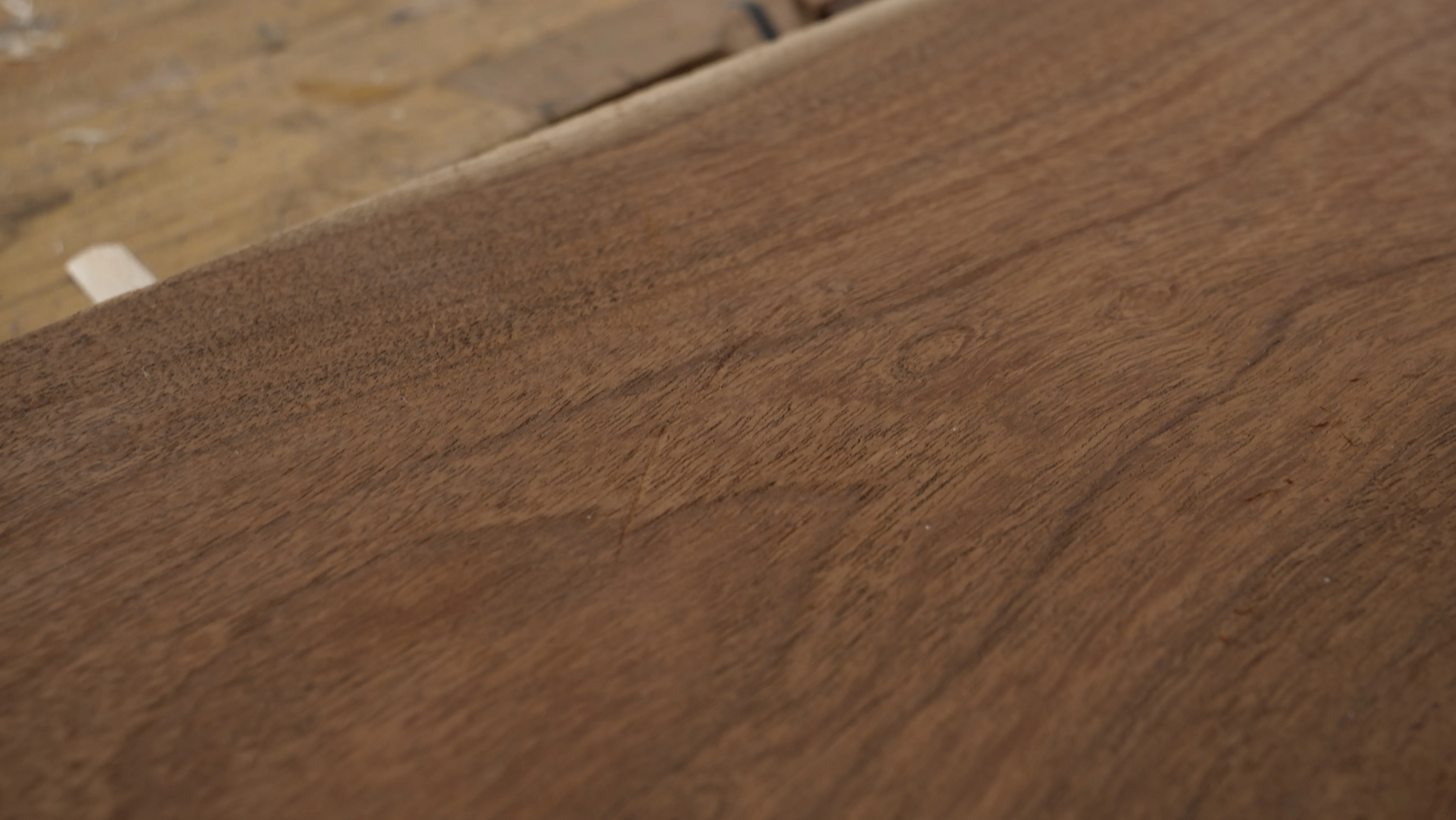 Wood surface before and after using a card scraper: