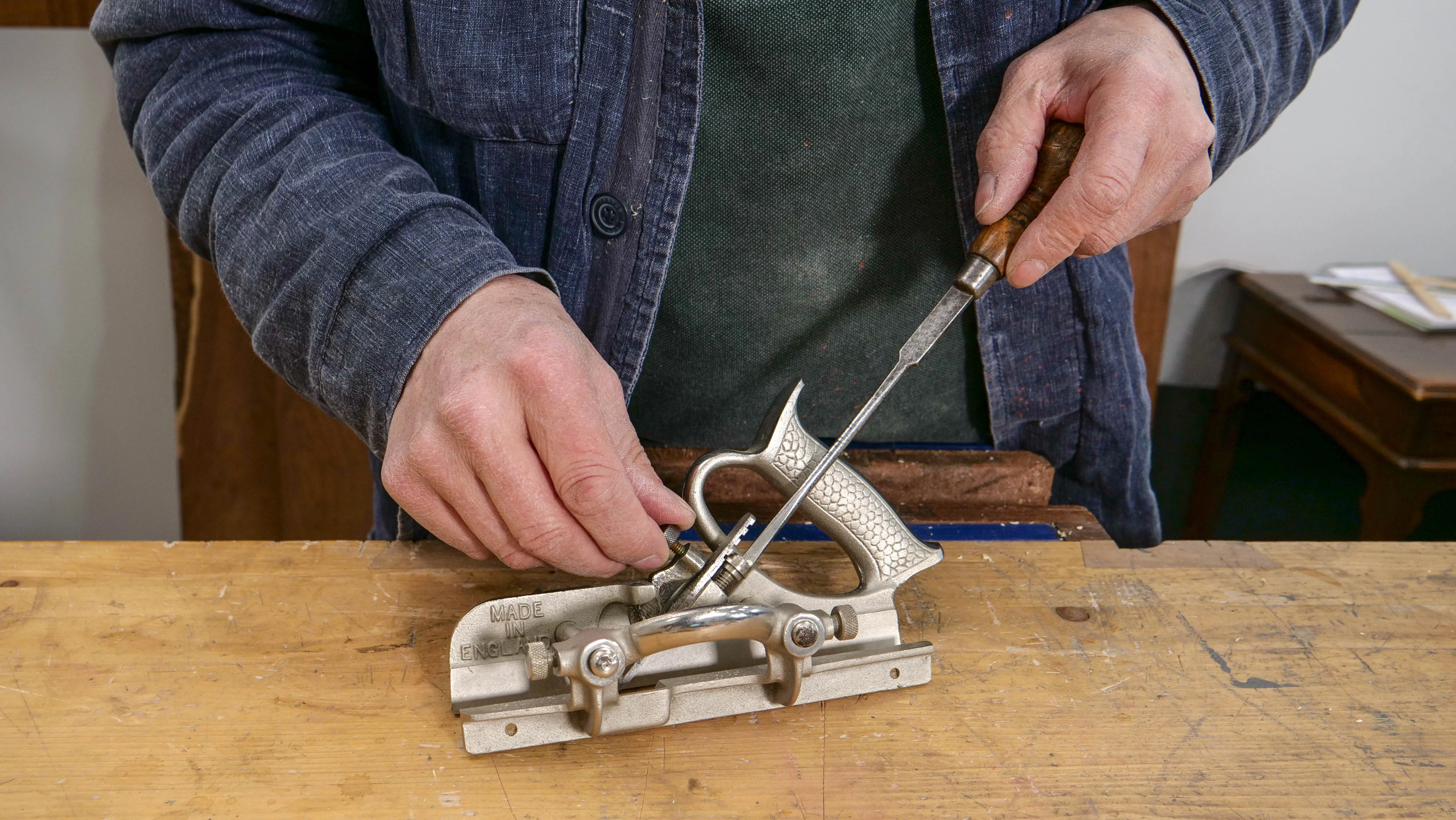 When using a plough plane, the cutting iron can be set deeper than a smoothing plane as it is narrower and, therefore, requires much less effort to push into the wood.