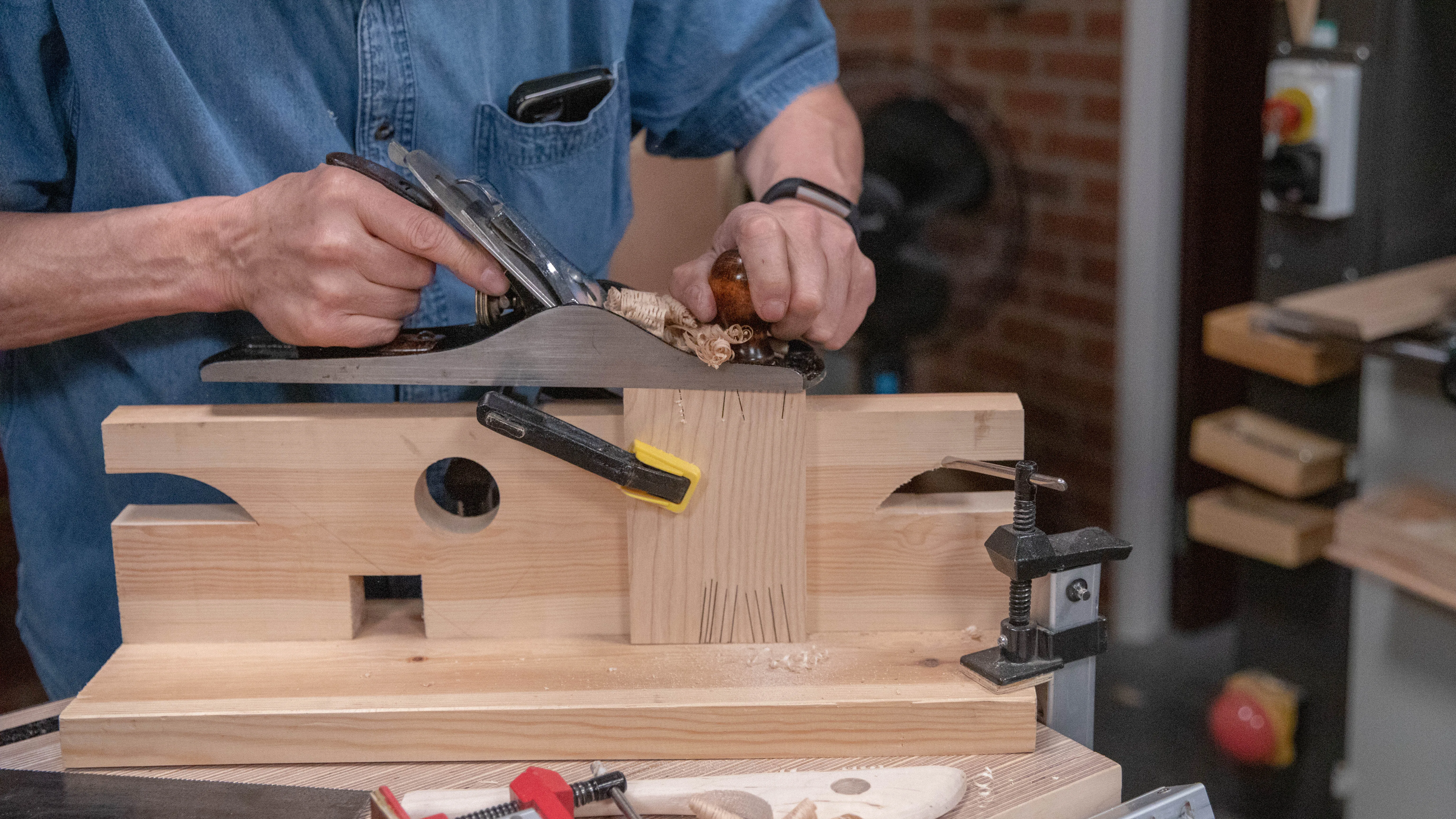 If you have a table to work on but don’t have a vise, Paul has demonstrated how you can make a jig which can be held in place using clamps. You can see more photographs of this in our blog ‘Woodworking without a Workbench’.